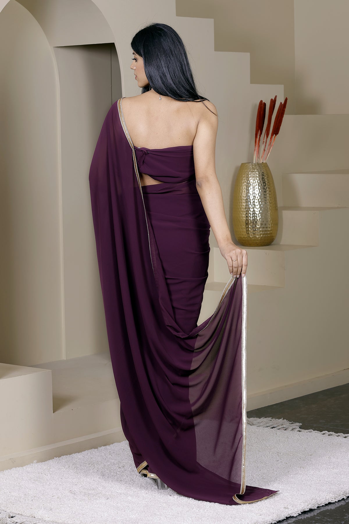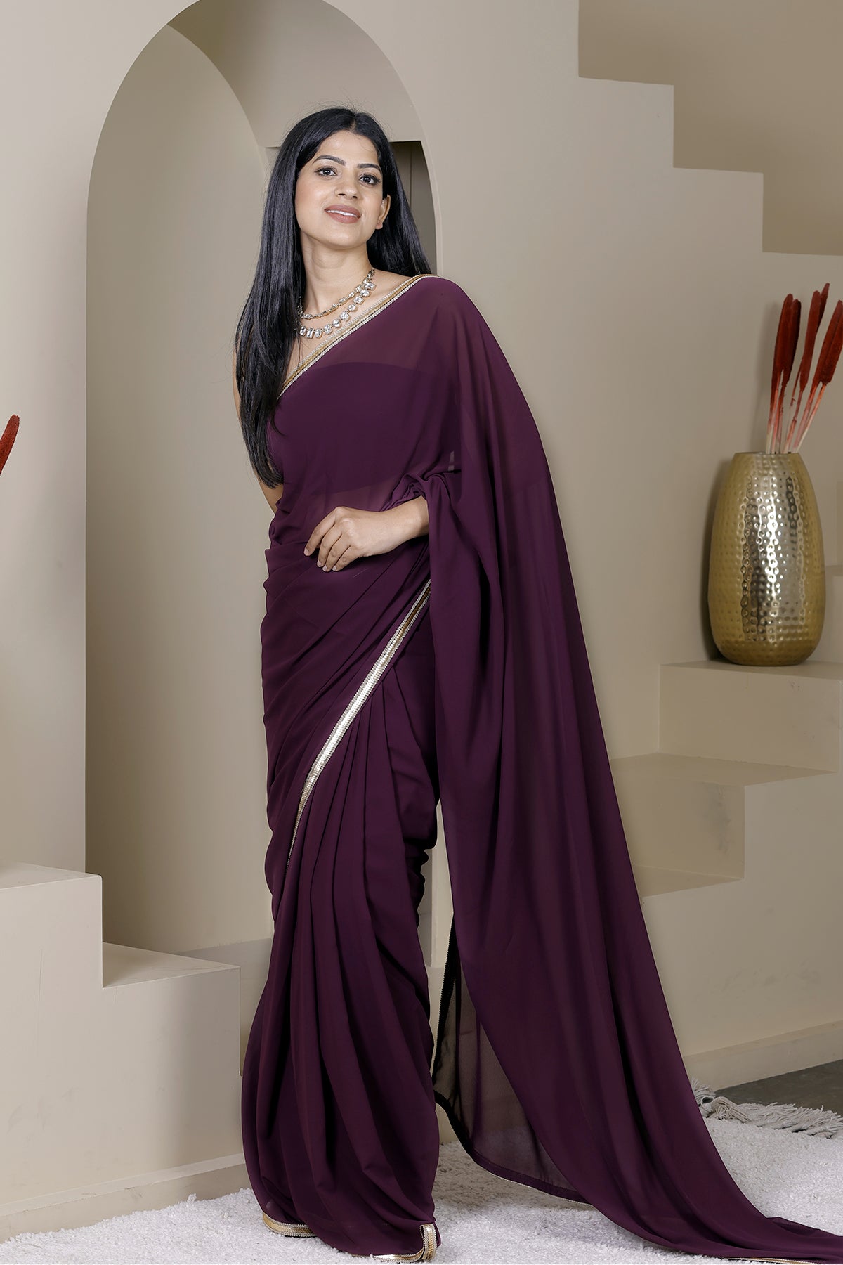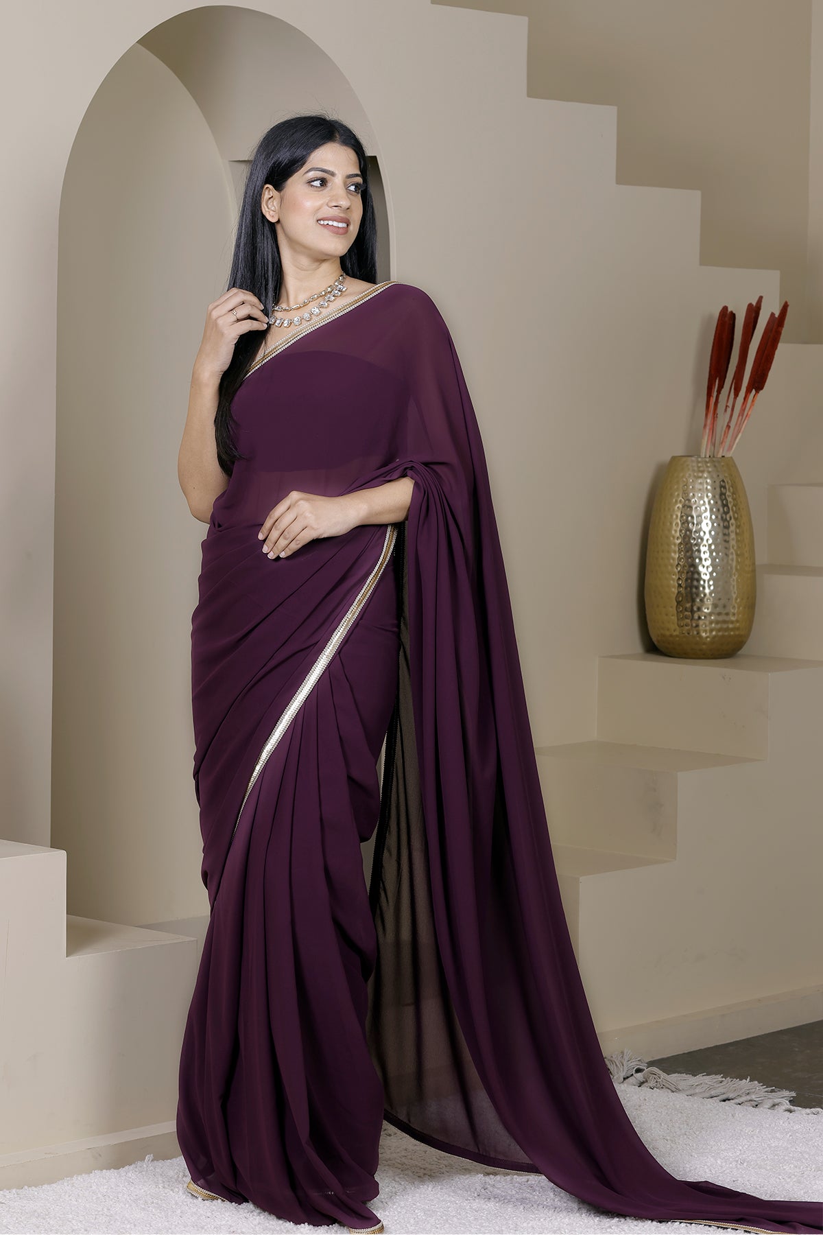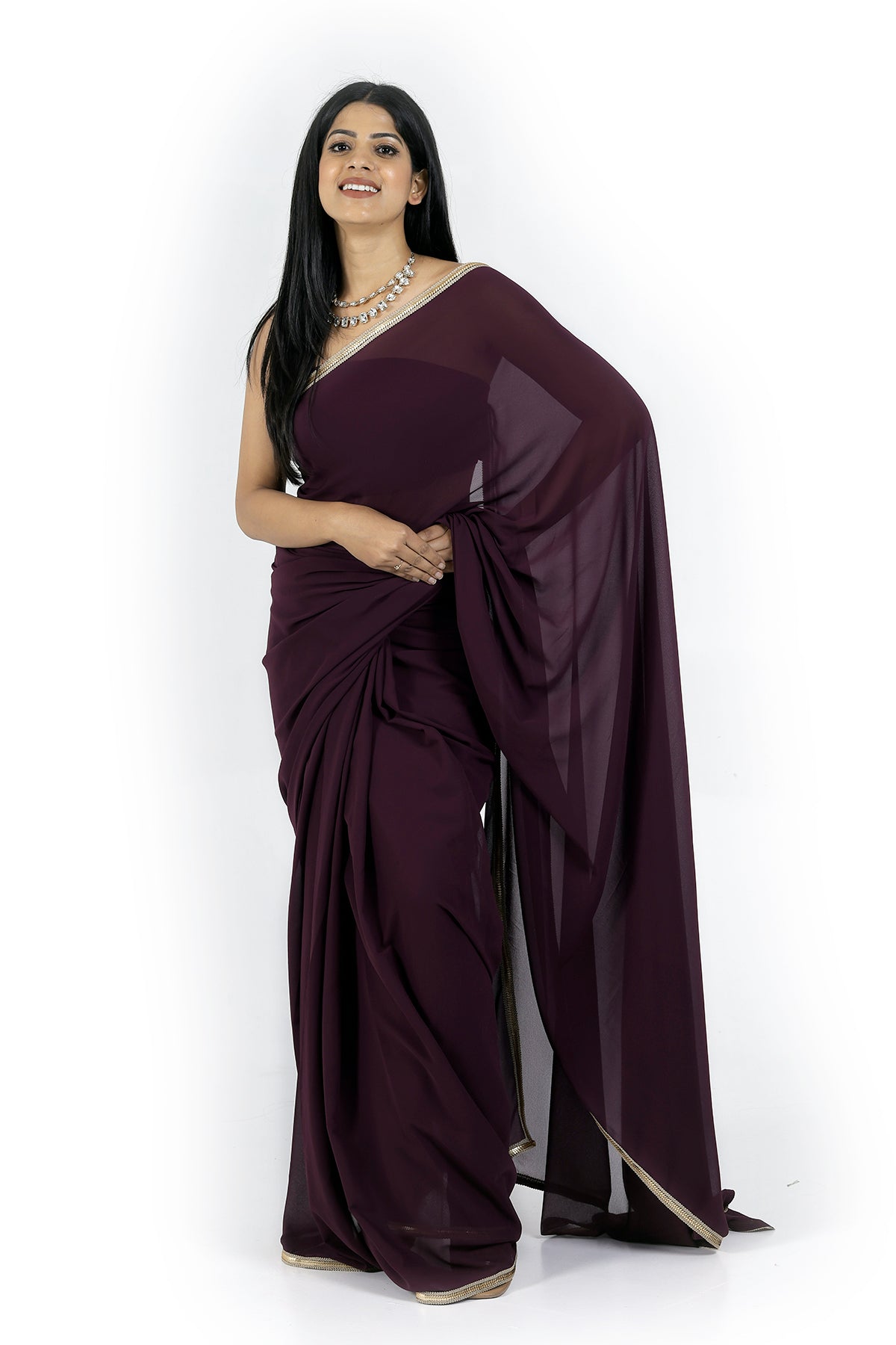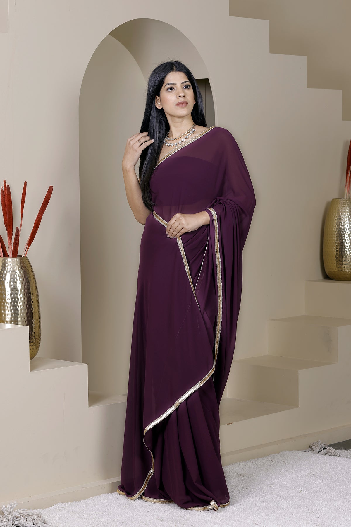 Saree- Deep Purple Georgette With Gold Sequin Border