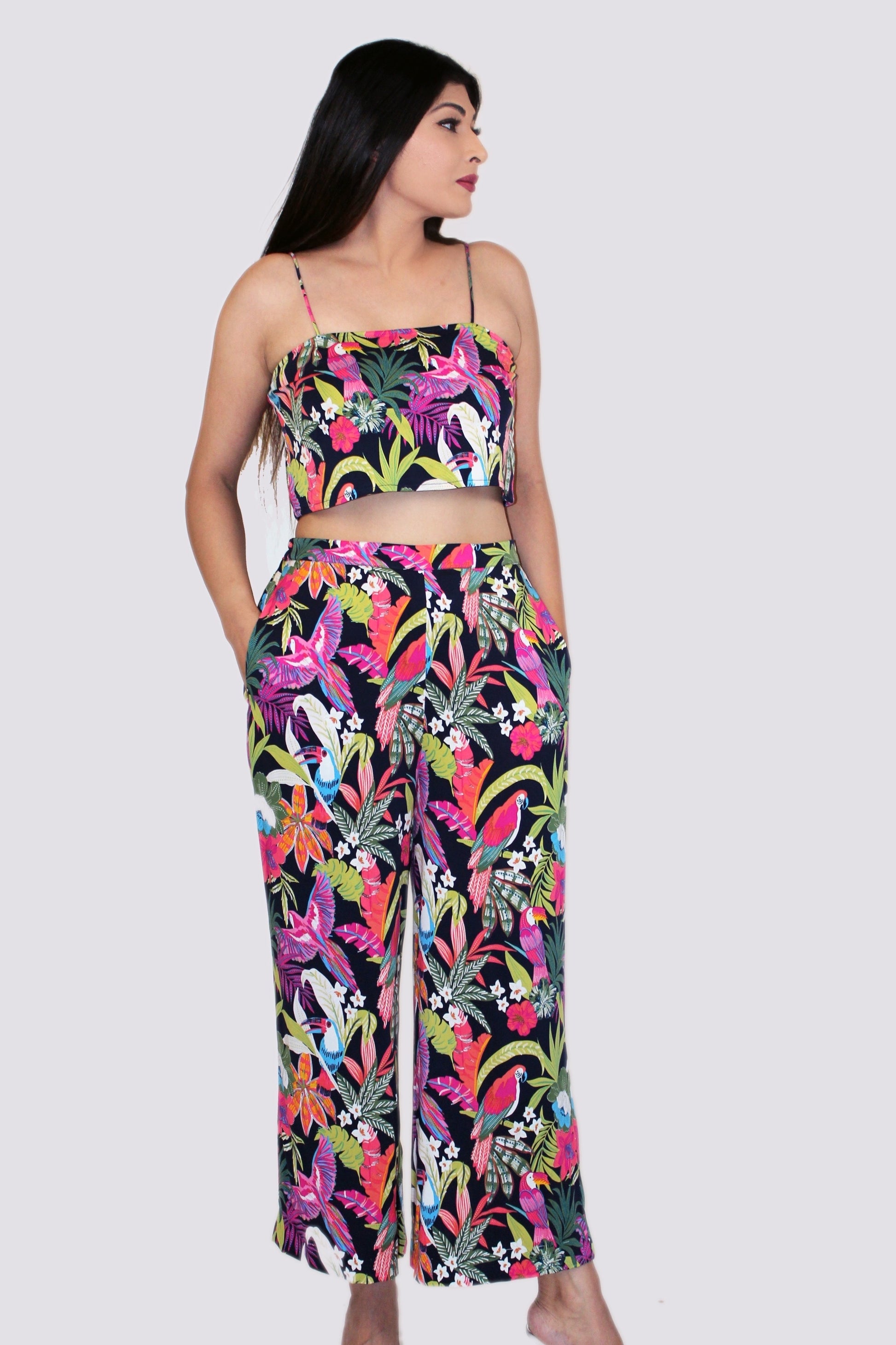 Give a dose of chique to your inner fashionista with our Queen's Park Co-ord Top! With a unique print and soft fabric, this crop top & loose pant co-ord set is perfect for the daring and fashionable. It's a must-have summer or monsoon staple for any occasion, whether it's a day out with friends, a party, or a holiday. Refresh your wardrobe with this playful and stylish top!