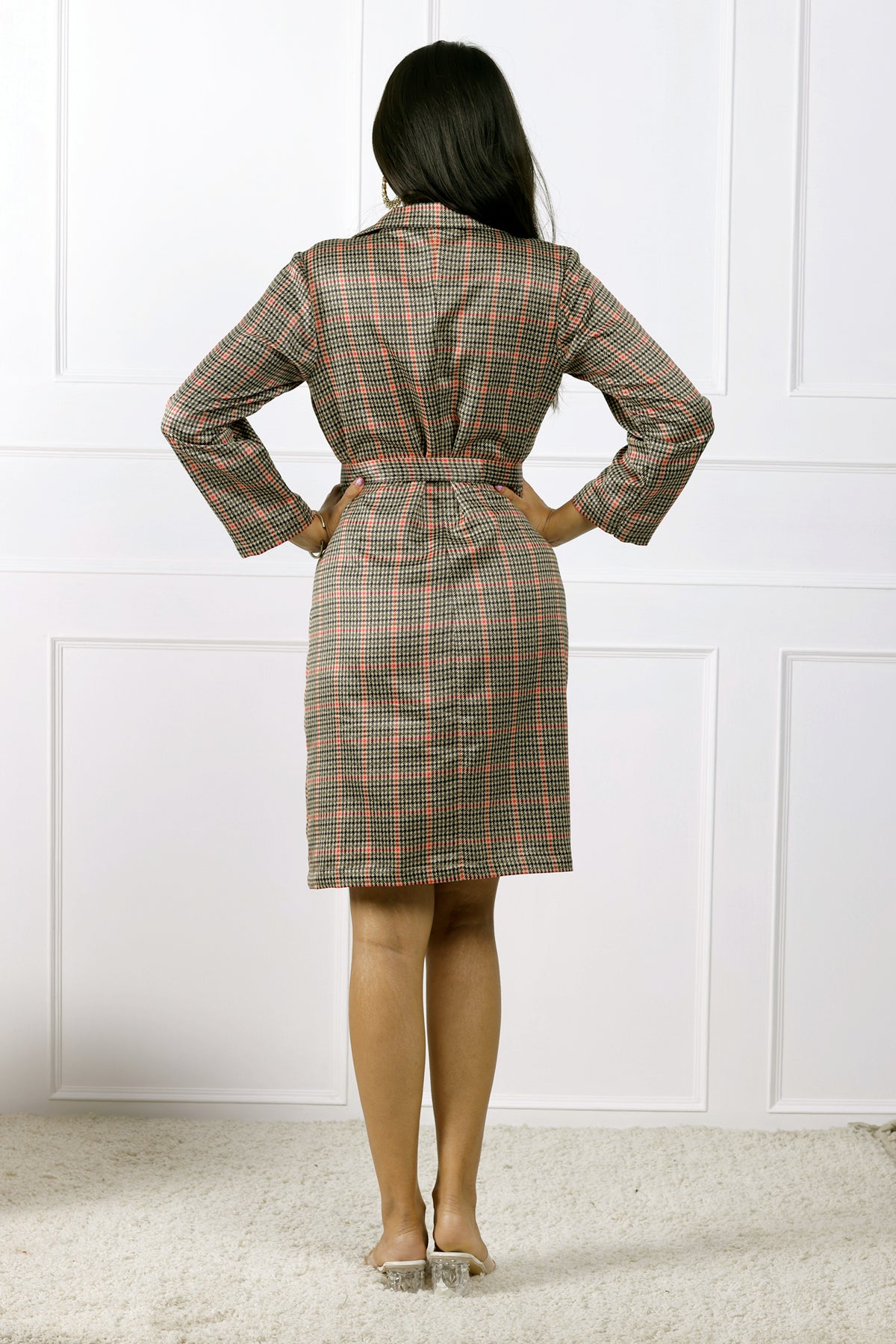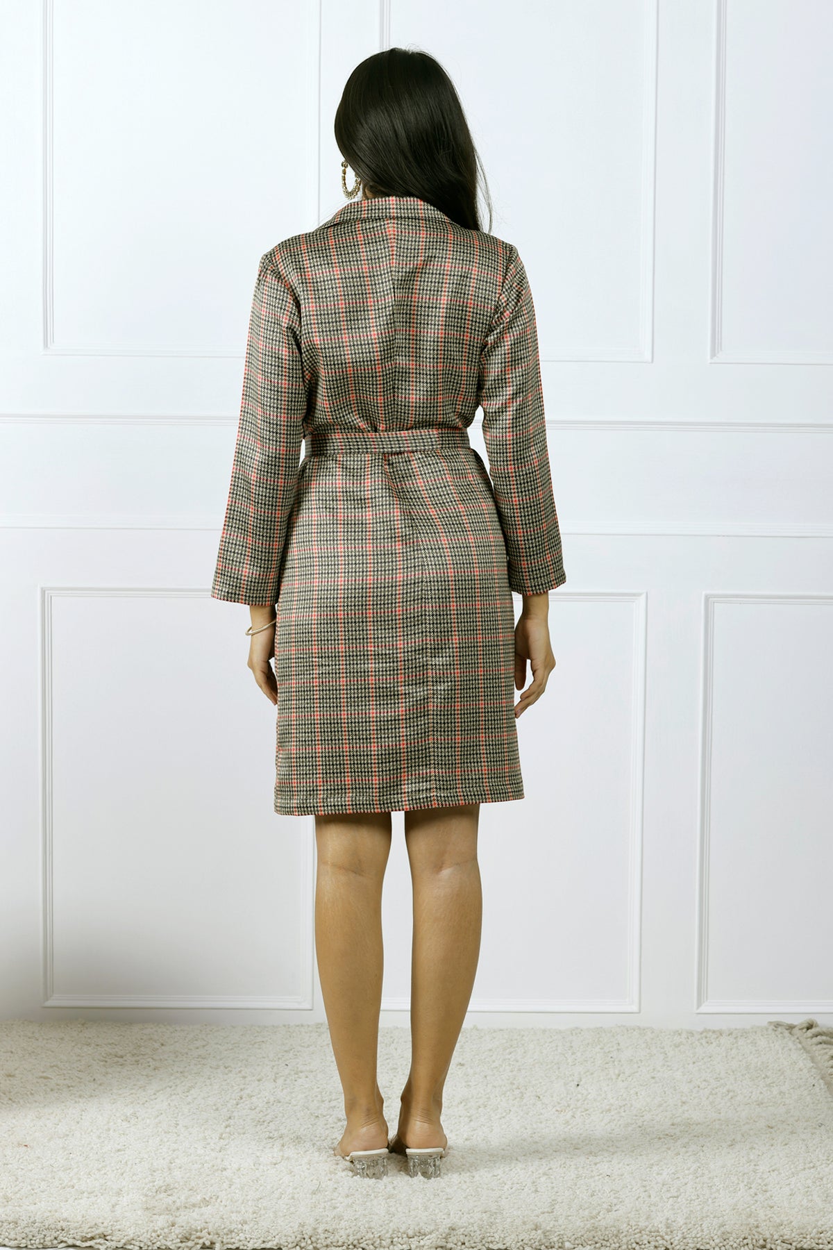 Take charge of your style with our Dakota Blazer Dress. This stylish blazer style dress features classy checks, fit for both formal and casual occasions. Fashionista must have for your wardrobe exuding edgy, playful & boss babe vibe. Upgrade your style quotient with this exclusive piece.
