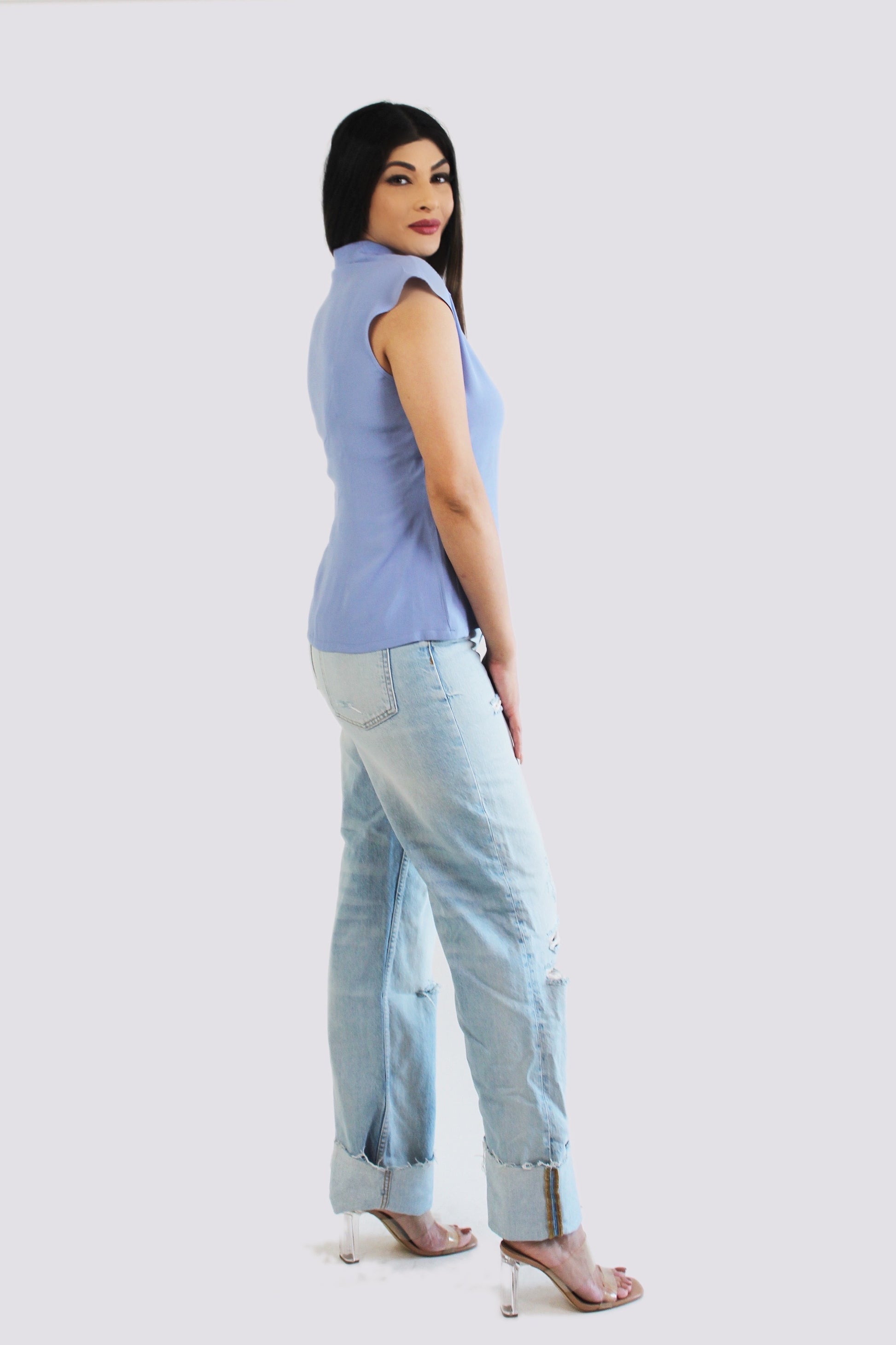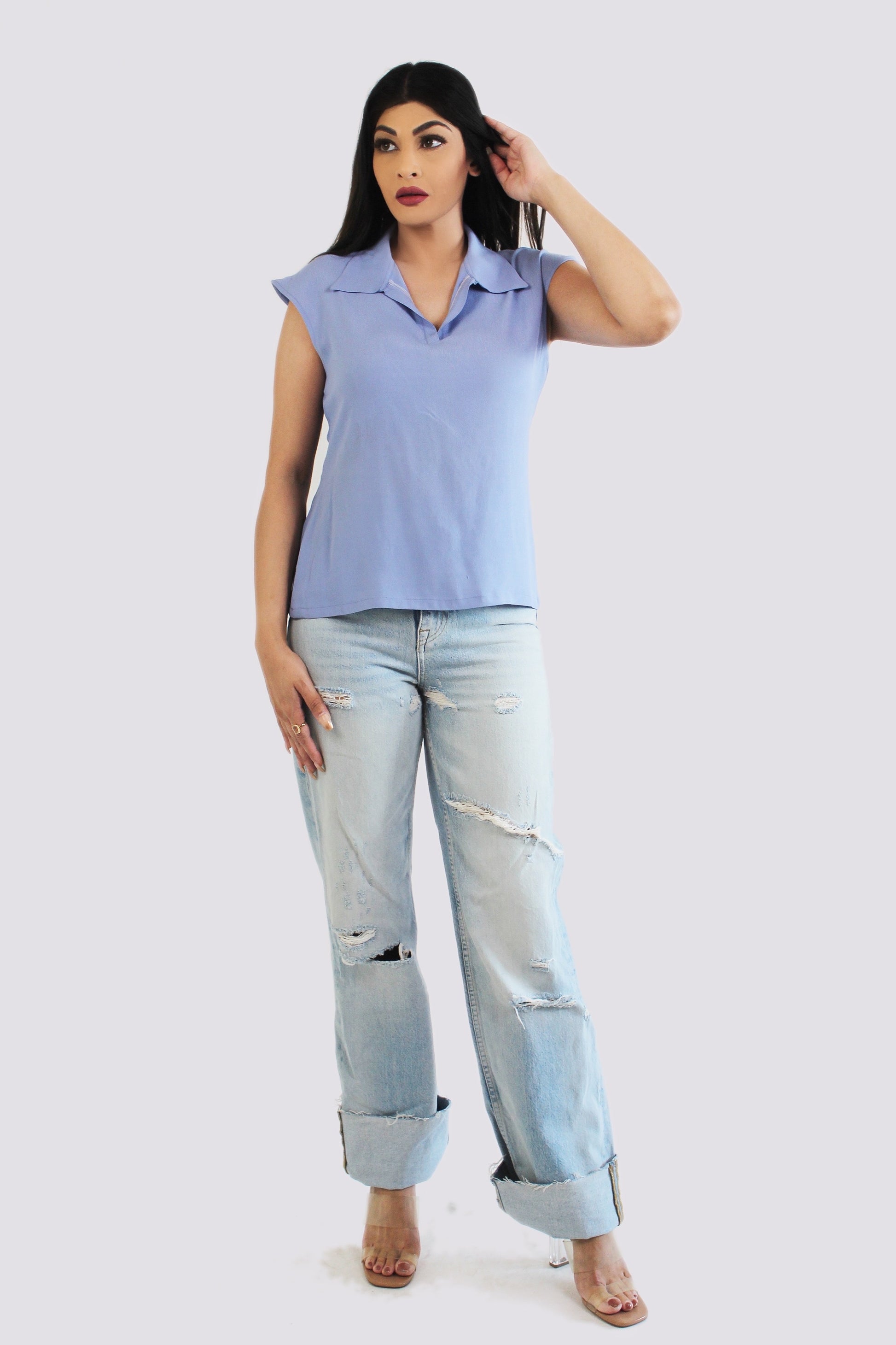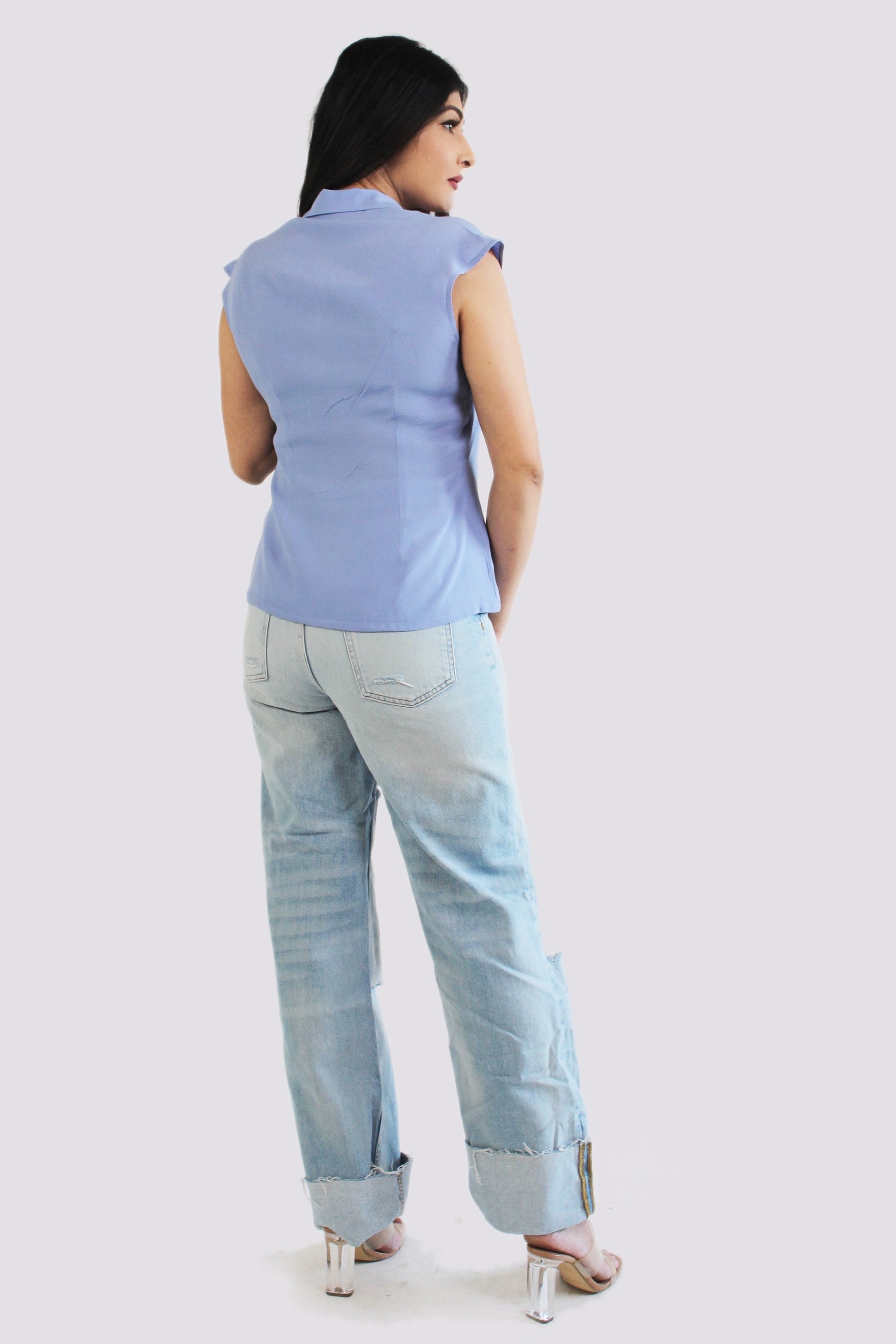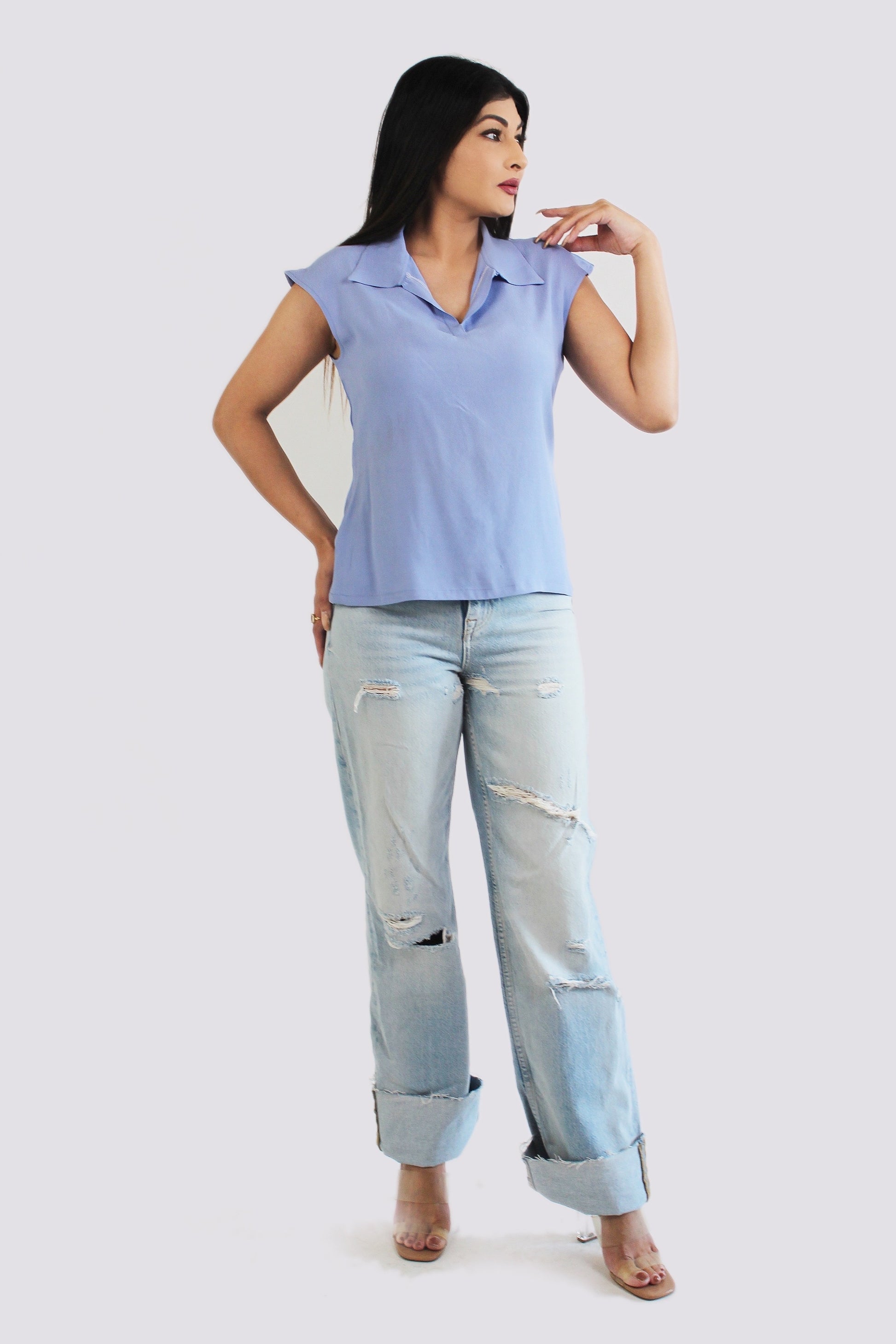 Upgrade your wardrobe with our Sky Is Blue Top - a must-have for any fashion-forward individual. This sophisticated collar top is perfect for everyday wear at work, home, or college. Its powder blue color and simple design makes it versatile and effortlessly stylish. Pair with skirts, jeans, pants, or shorts for a timeless and elegant look.