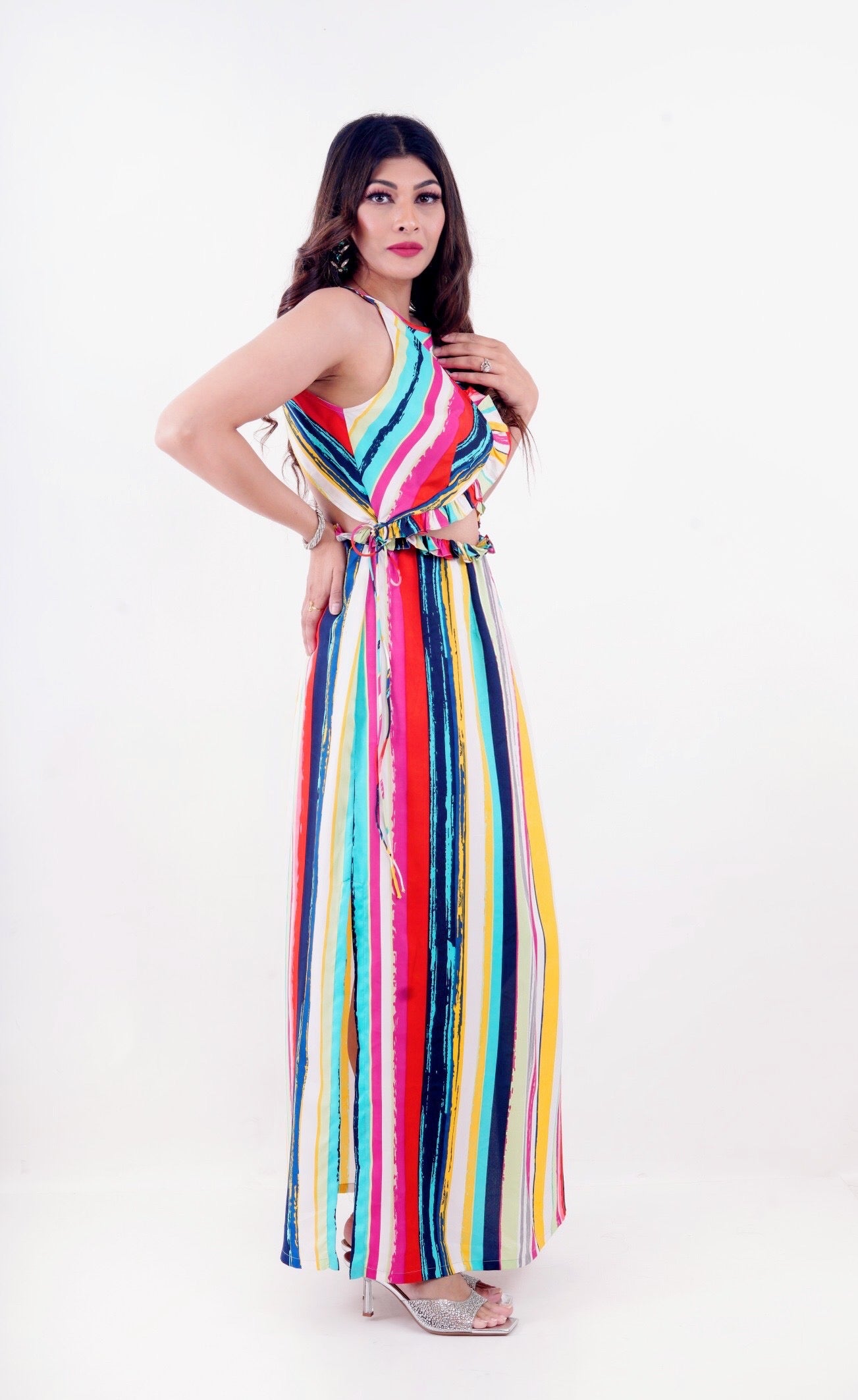 The Sweet Repeat Petal Polyester Long Dress is the perfect pick for the fashion-forward silly goose. Super stylish and sexy, this dress is a must-have for any holiday soiree, party, or just chilling and looking mighty fine. With its adjustable waist it Fits all shapes and feels!